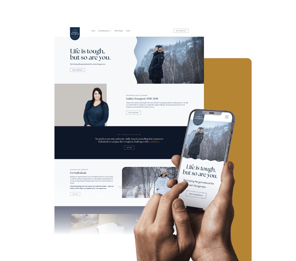 In July 2024, we had the pleasure of working with Kaitlyn Toneguzzi Counselling & Consulting, developing her new website & brand. Kaitlyn Toneguzzi is registered psychotherapist and counsellor in Thunder Bay, Ontario.